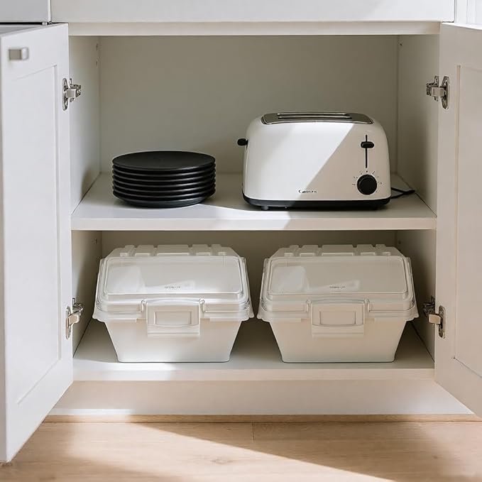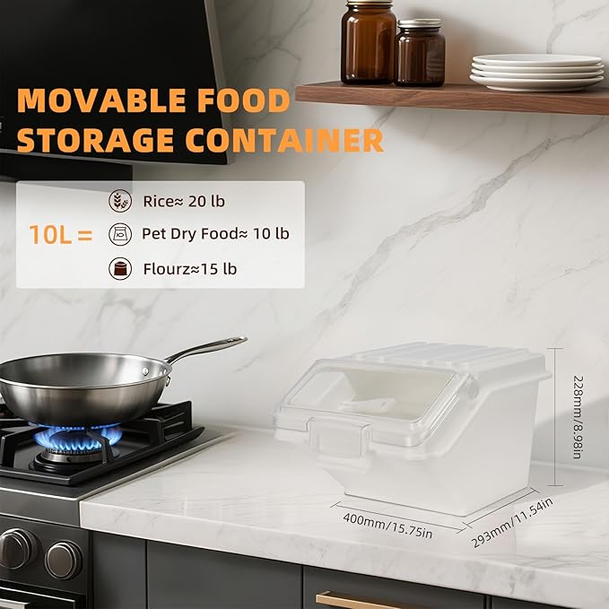 - 4. 【Tiered Capacity & Flexible Use】Available in 3 optimized sizes:10L (holds ~4.5kg / 10lb flour)24L (holds ~11kg / 24lb flour)47L (fits standard 25kg/55lb flour sacks*).Perfect for household pantries to commercial kitchens – scales seamlessly with your storage needs.