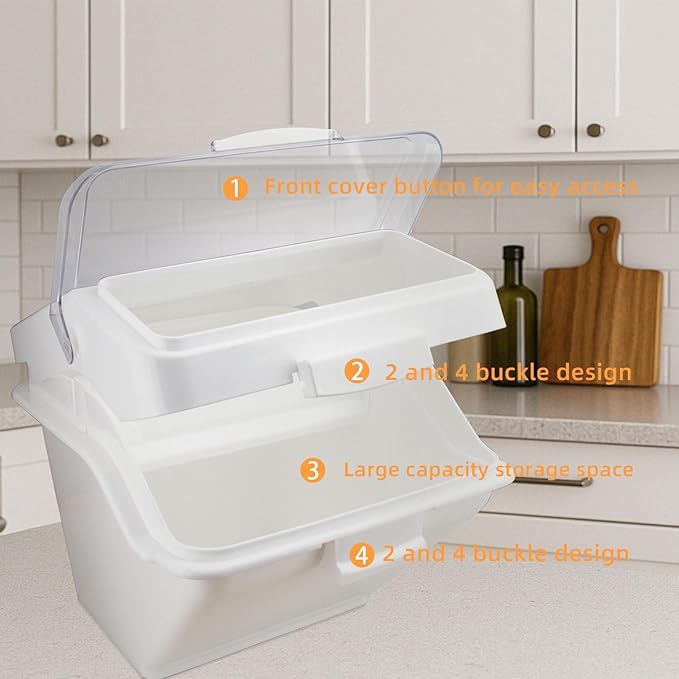 - 1. 【Triple-Lock Buckles & Airtight Seal】The barrel lid features 3 reinforced locking buckles and an embedded silicone gasket. This professional sealing system effectively blocks moisture and air, preventing flour from clumping while keeping contents fresh and dry long-term.