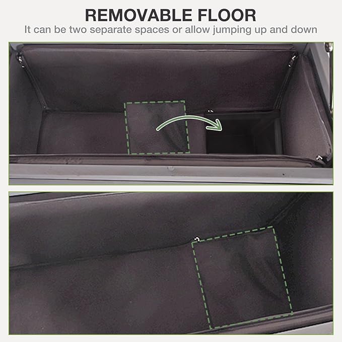 - Multi-functional Design: The cat house offers a spacious interior with a removable floor, allowing you to divide it into two separate spaces or let your cat jump around freely. Additionally, the cat house is equipped with transparent PVC curtains that ensure ventilation while allowing your cat to enjoy the sunlight.