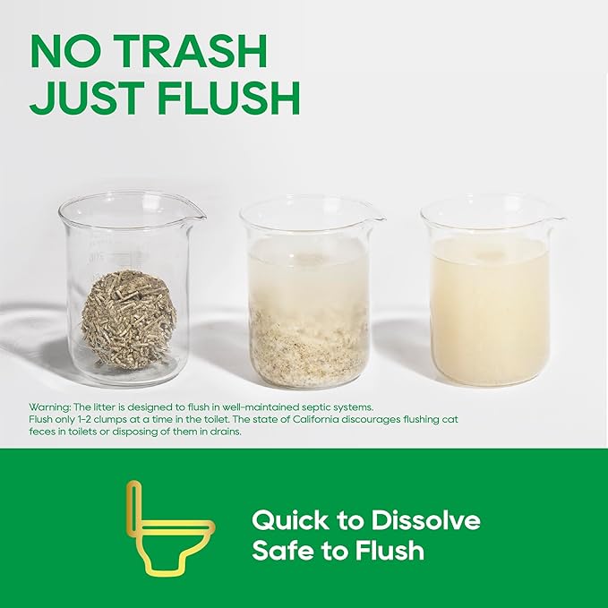 - Flushable & Biodegradable – Eco-conscious and easy to clean, this litter is fully flushable and made from biodegradable ingredients—making disposal hassle-free and sustainable.