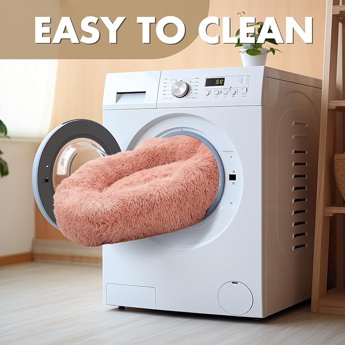 Athena Collection Washable Dog Bed Medium Size Dog, Cat Bed for Indoor Cats, 31 Inches Fluffy Faux Fur Round Pet Bed Calming Cozy Soft Warming Donut for Medium Puppy Kitten, Pink