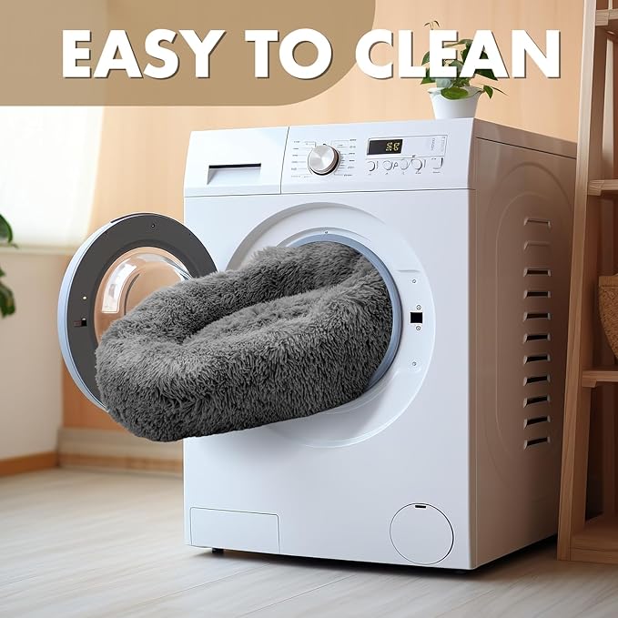 - Donut-Shaped Design: This round, donut dog bed supports your pet’s natural nesting instincts, giving them a cozy, secure place to curl up. The raised edges add a sense of safety while offering comfortable head and neck support, a great calming dog bed it is.