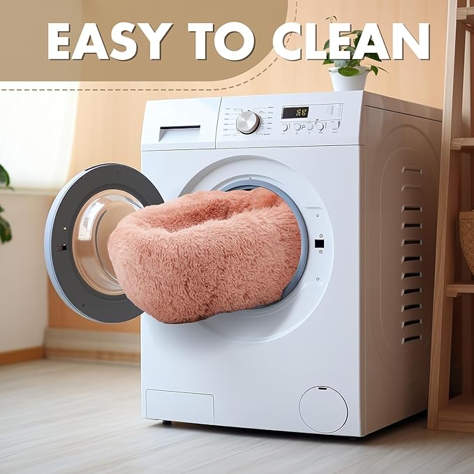 - Donut-Shaped Design: This round, donut dog bed supports your pet’s natural nesting instincts, giving them a cozy, secure place to curl up. The raised edges add a sense of safety while offering comfortable head and neck support.
