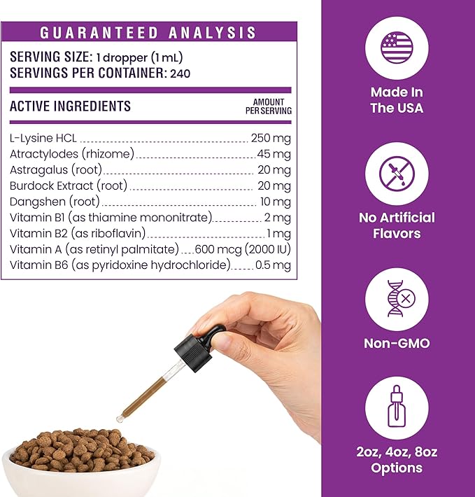 - Powerful Immune Defense Formula – 250mg L-Lysine plus herbal adaptogens strengthen natural defenses, helping cats resist stress, flare-ups, and seasonal immune challenges.