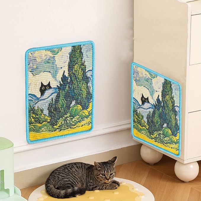 - β PORTABLE SIZE FOR TRAVEL & SMALL SPACES β Compact 15"x11.8" design fits tight corners, RVs, or suitcases. Starry Sky Pattern/ Sunflowers Pattern/ Kitty Galore Pattern/ Night River Pattern/ Mona Lisa Pattern/ Geometric Pattern optional, Give your cat a familiar scratching spot anywhere