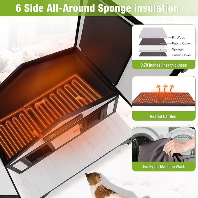 - All-Around Warmth & Safety – 6-sided insulation with waterproof PVC, Oxford cloth, and low-voltage heating wire keeps cats toasty while a flame-retardant sponge layer adds extra peace of mind