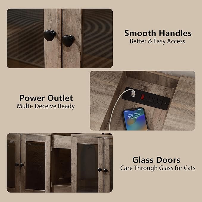 - 【Tempered Glass & Worry-Free Packaging】Rest easy about the glass! The door is made of tempered glass, known for its superior shatter resistance. To ensure maximum protection, we ship double cat litter enclosure with thick foam padding specifically designed to safeguard the glass during transit.