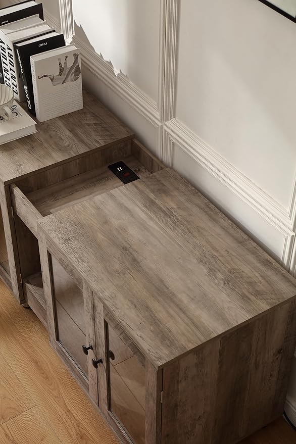 - 【Panoramic Glass Doors For Better Viewing】Full-view tempered glass doors let you discreetly viewing your cat's bathroom habits, post-meal activity, or playful moments without intrusion.The glass doors offer easy cleaning access while containing litter scatter effectively.